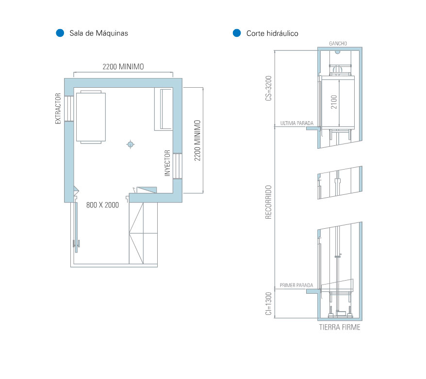 Ascensores Hidráulicos: Salas de maquinas y corte